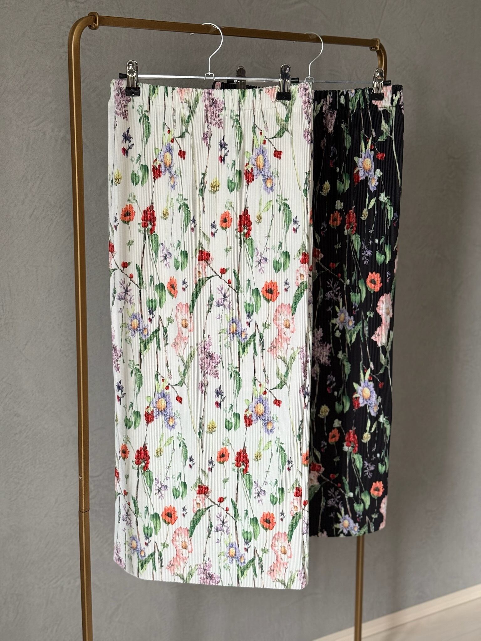 大人気のカラープリーツスカートの花柄バージョンが登場です。