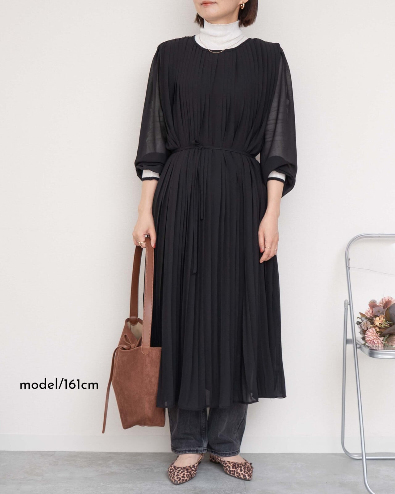 全体的にプリーツが入った女性らしさたっぷりのワンピース