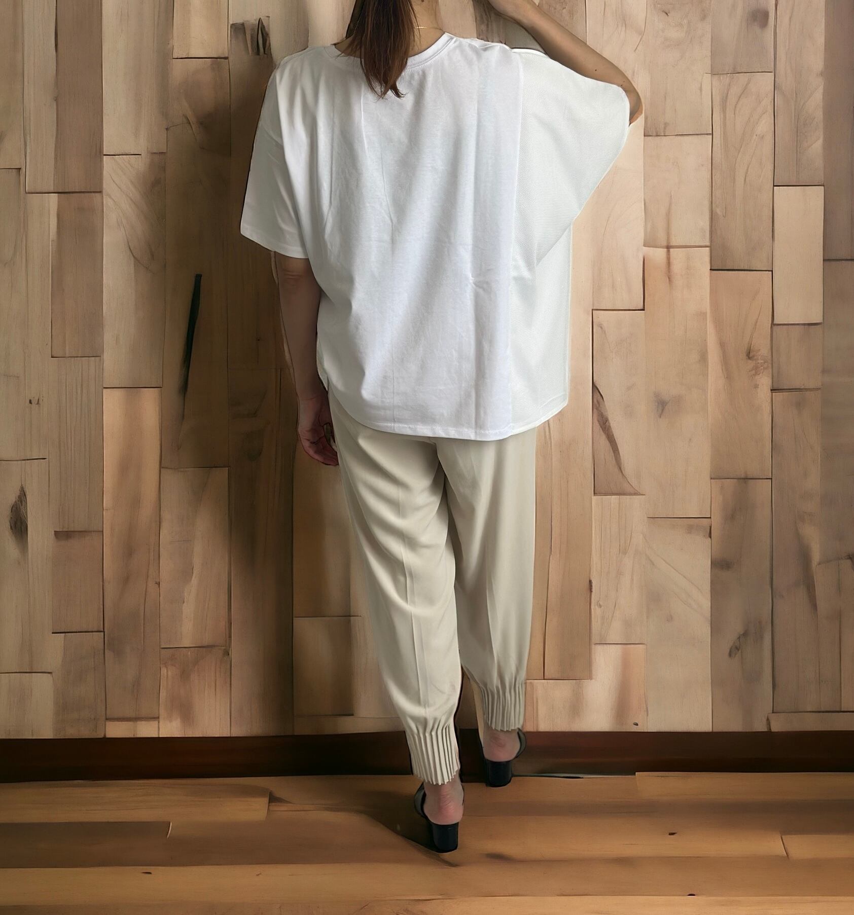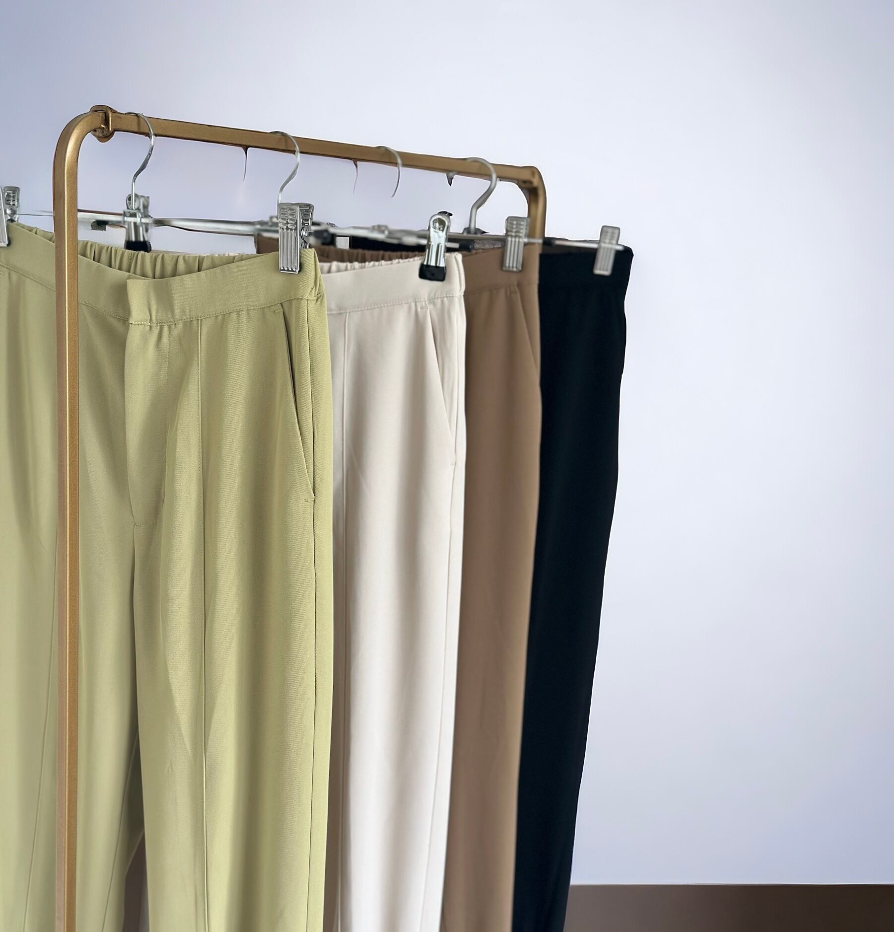 サラッとしつつも適度な落ち感がある生地を使用した履き心地も抜群のテーパードパンツ。