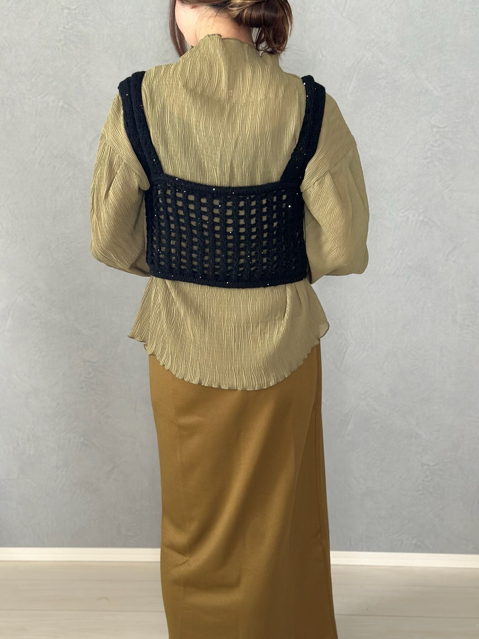 ニット素材で軽やかな印象のメッシュ編ビスチェ。