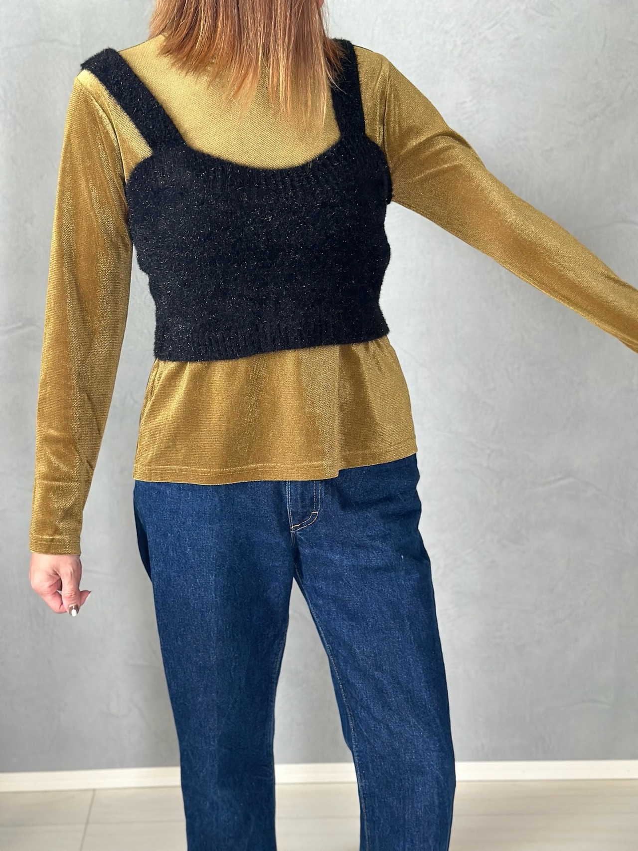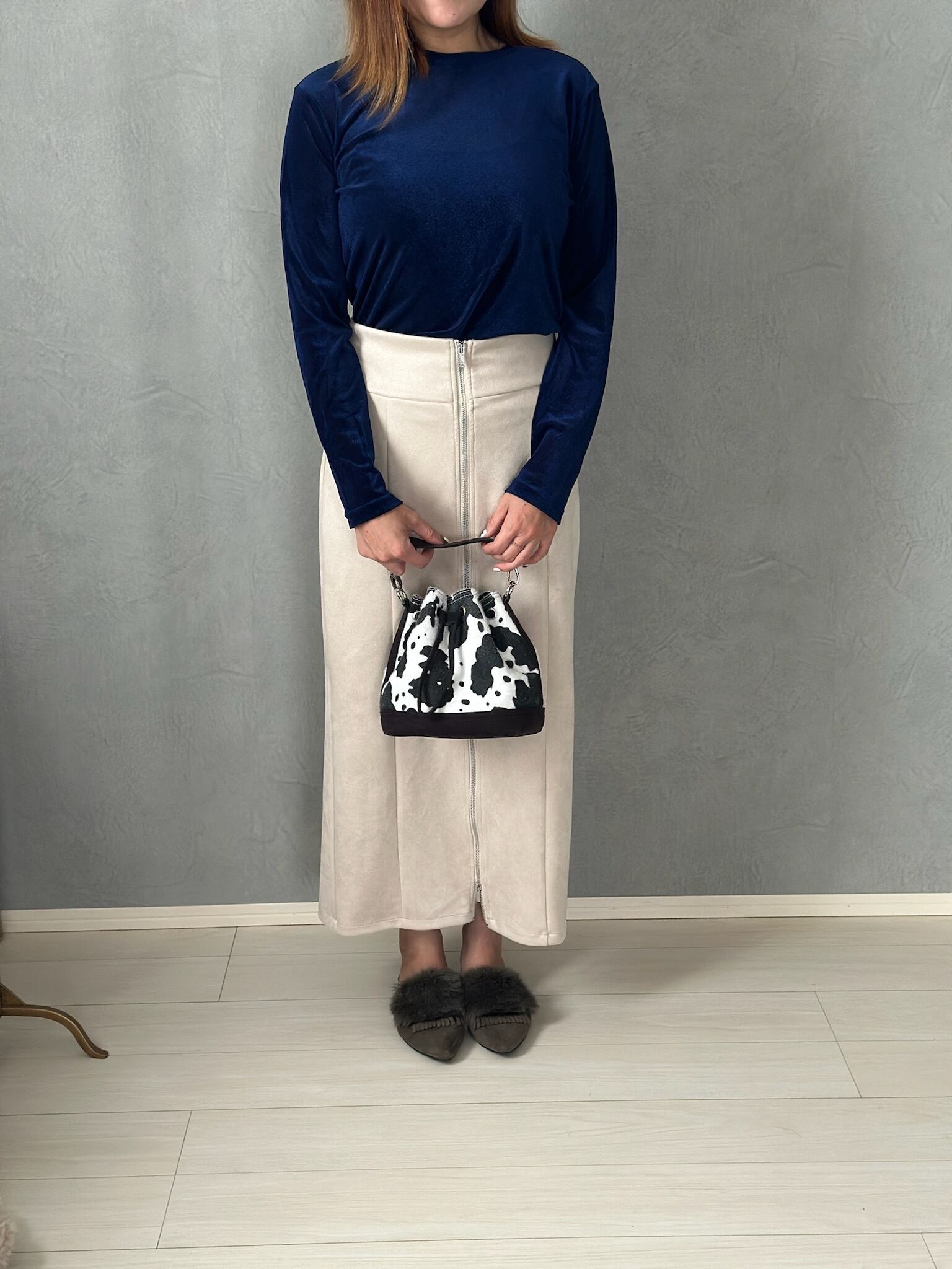 程よい透け感と光沢感があり、1枚でも着映えが叶うベロア素材。