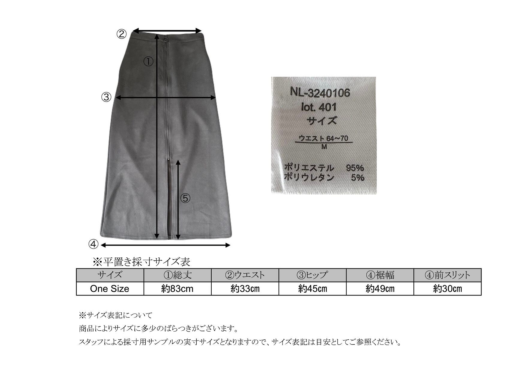 フロントジップ スエードナロースカート