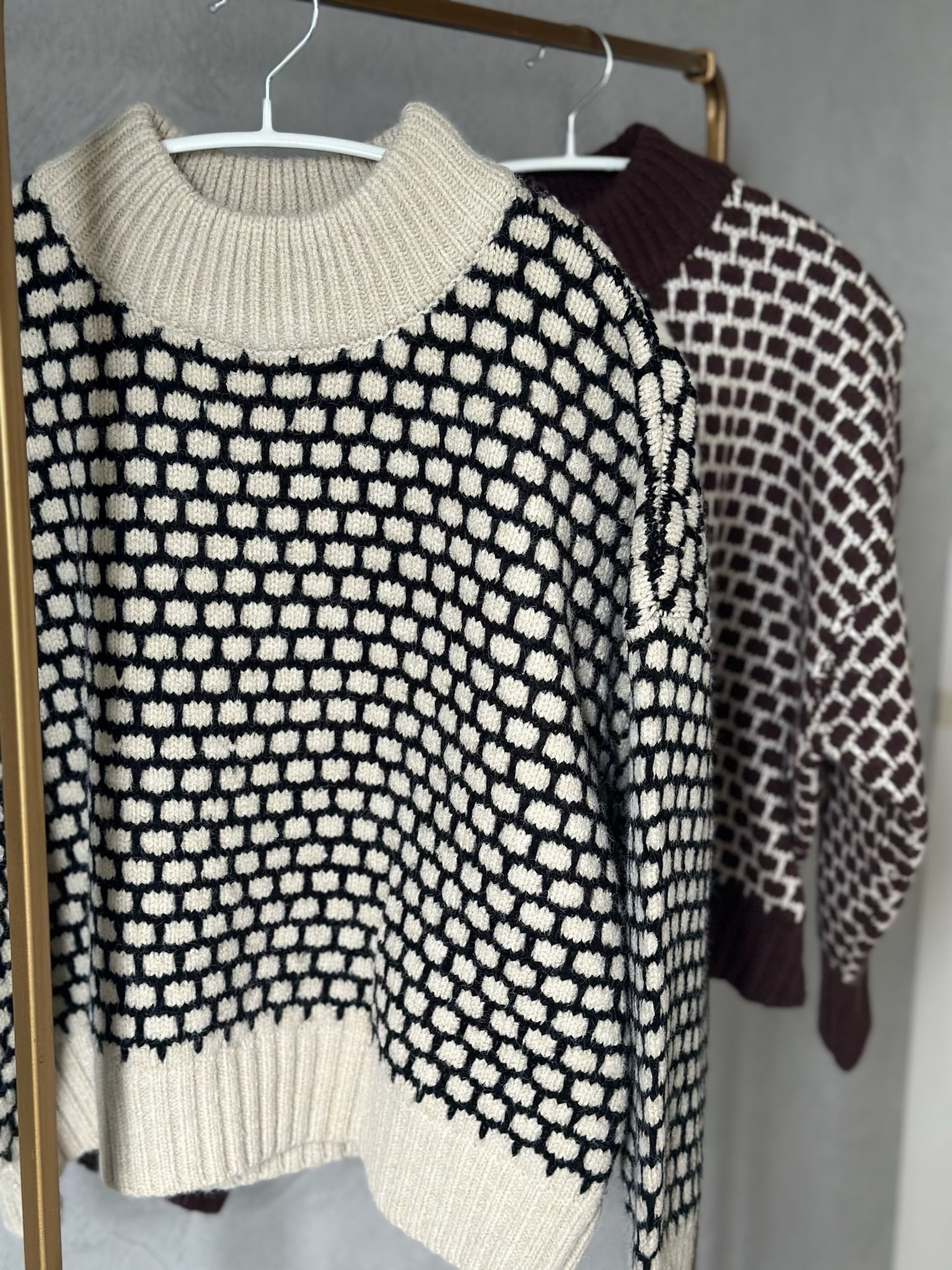 存在感のあるカラーとデザインでニットが主役のトップスです☆
