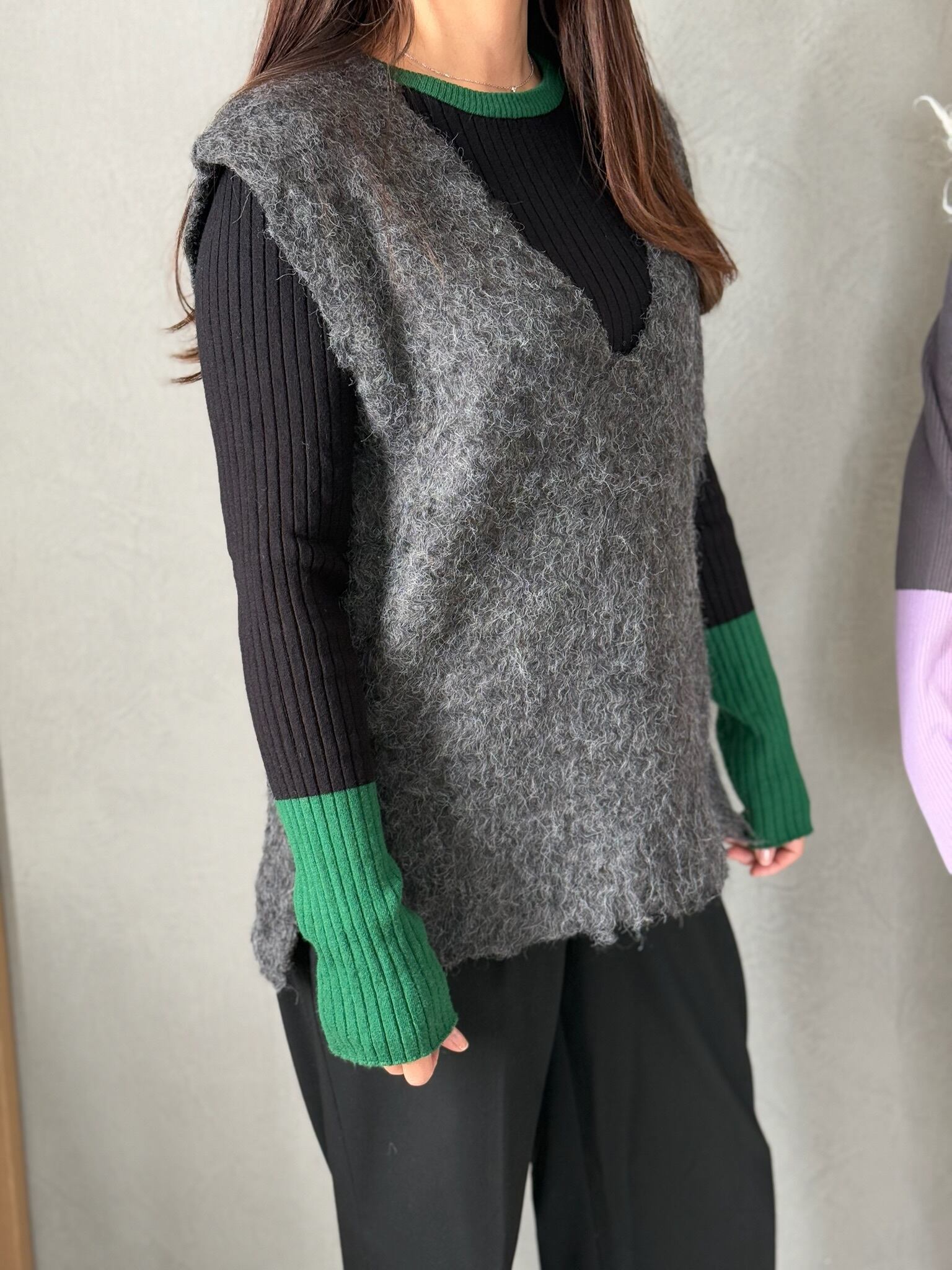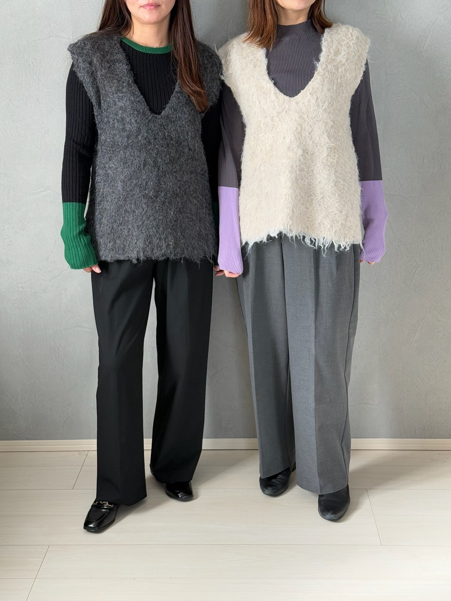 ミックスカラーと起毛感がかわいいVネックニットベスト